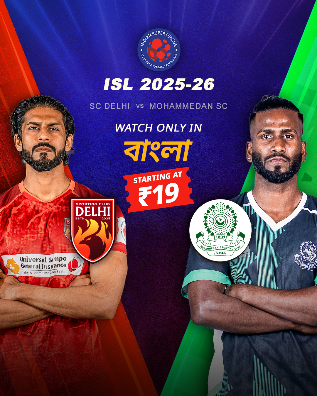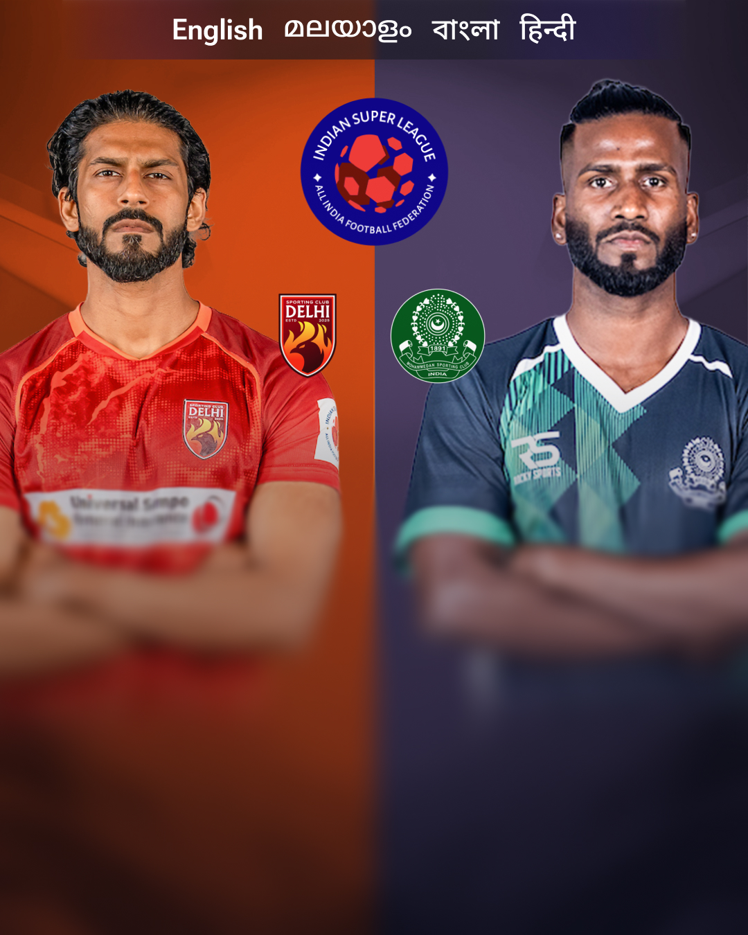 Match: ISL 2025-26. Teams: Sporting Club Delhi vs Mohammedan SC. Status: Live matchLiveISL 2025-26Sporting Club DelhiMohammedan SC