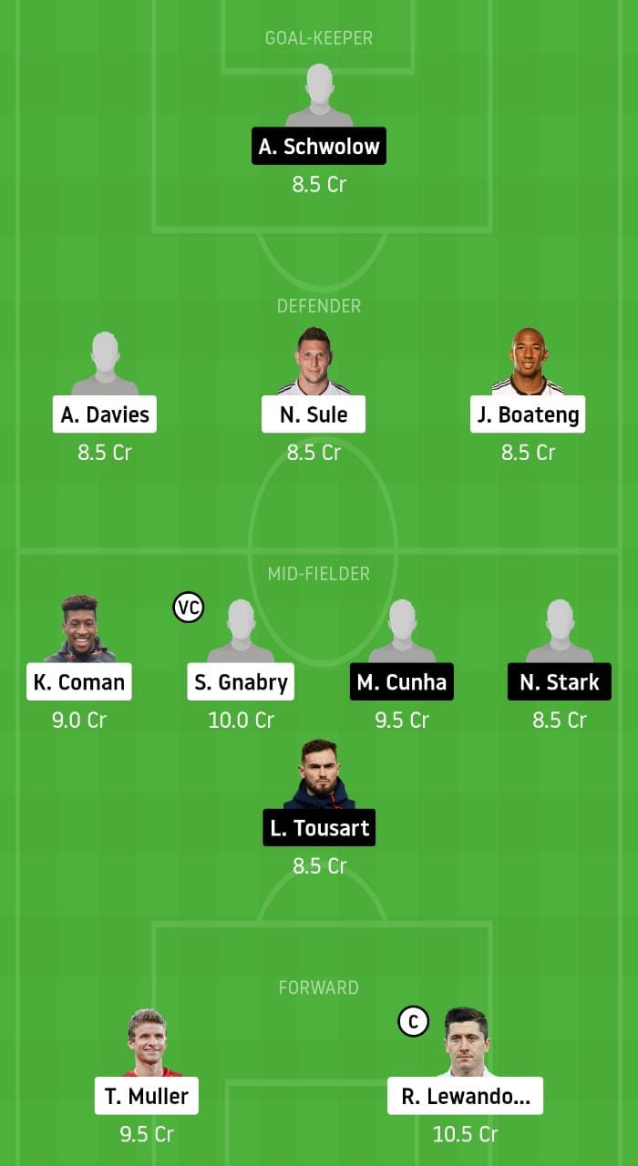 Neuer, Davies, Boateng, Sule, Pavard, Kimmich, Tolisso, Coman, Muller, Gnabry, Lewandowski.