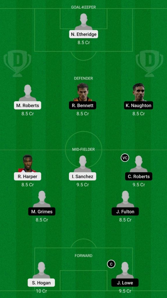 Etheridge (GK), H. Dean, M. Colin, M. Roberts, K. Pedersen, Sanchez, Sunjic, A. Halilovic, R. Harper, L. Jutkiewicz, S. Hogan.
