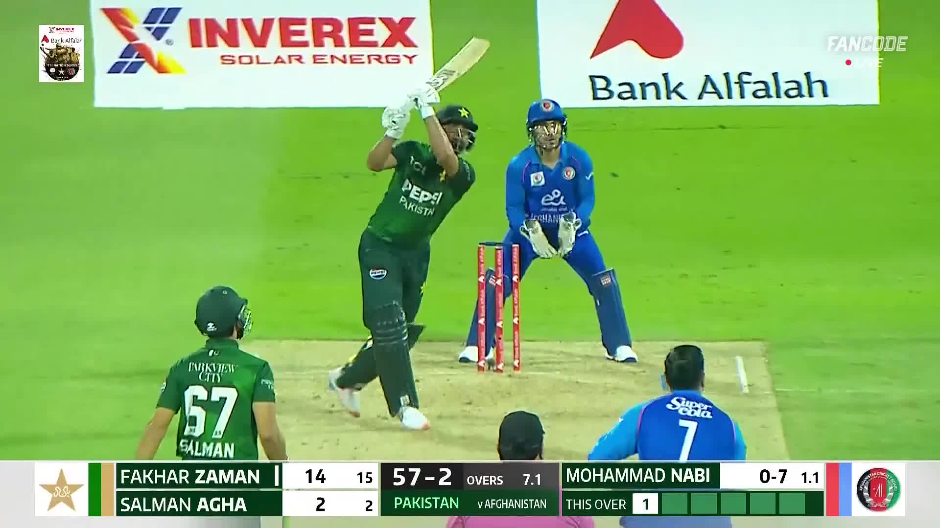 poster url for Six! Fakhar Zaman Powers A Clean Lofted Shot Beyond The Long Off Fence