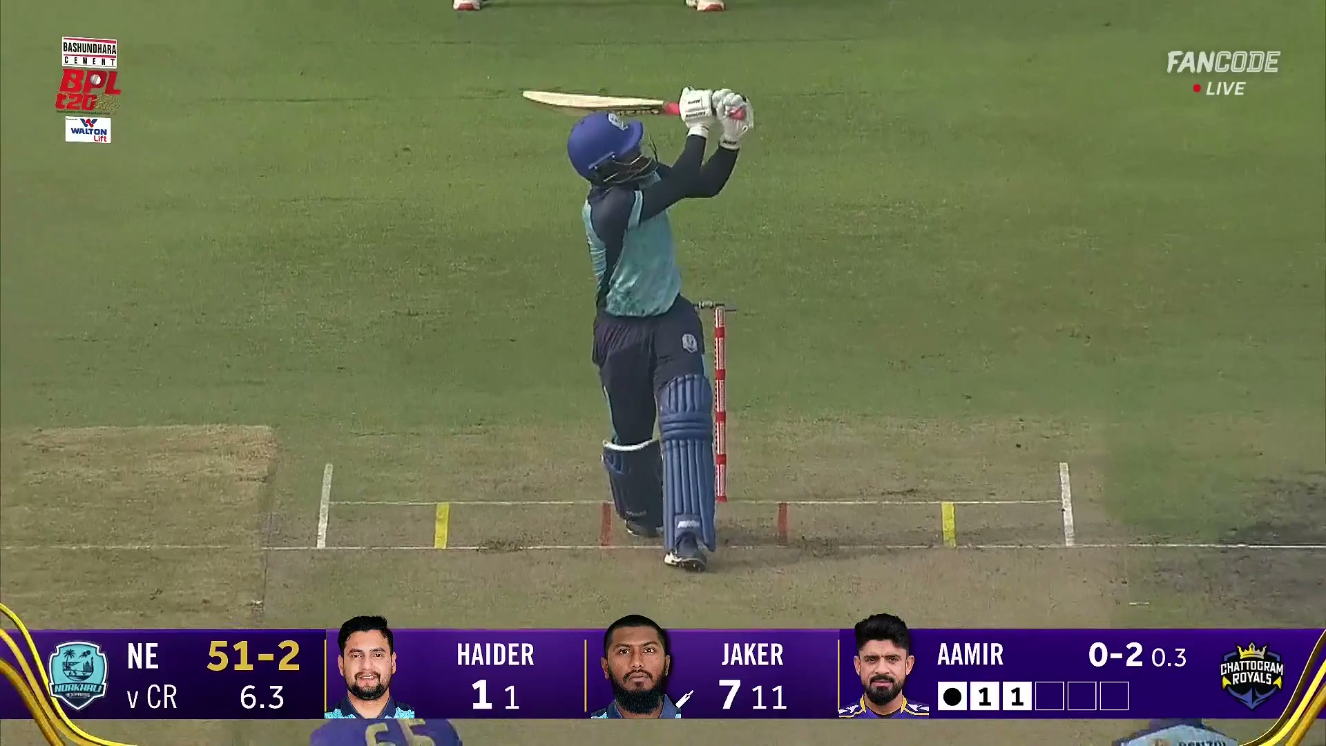 poster url for Six! Jaker Ali Plunders Aamer Jamal Over Square Leg For A Maximum