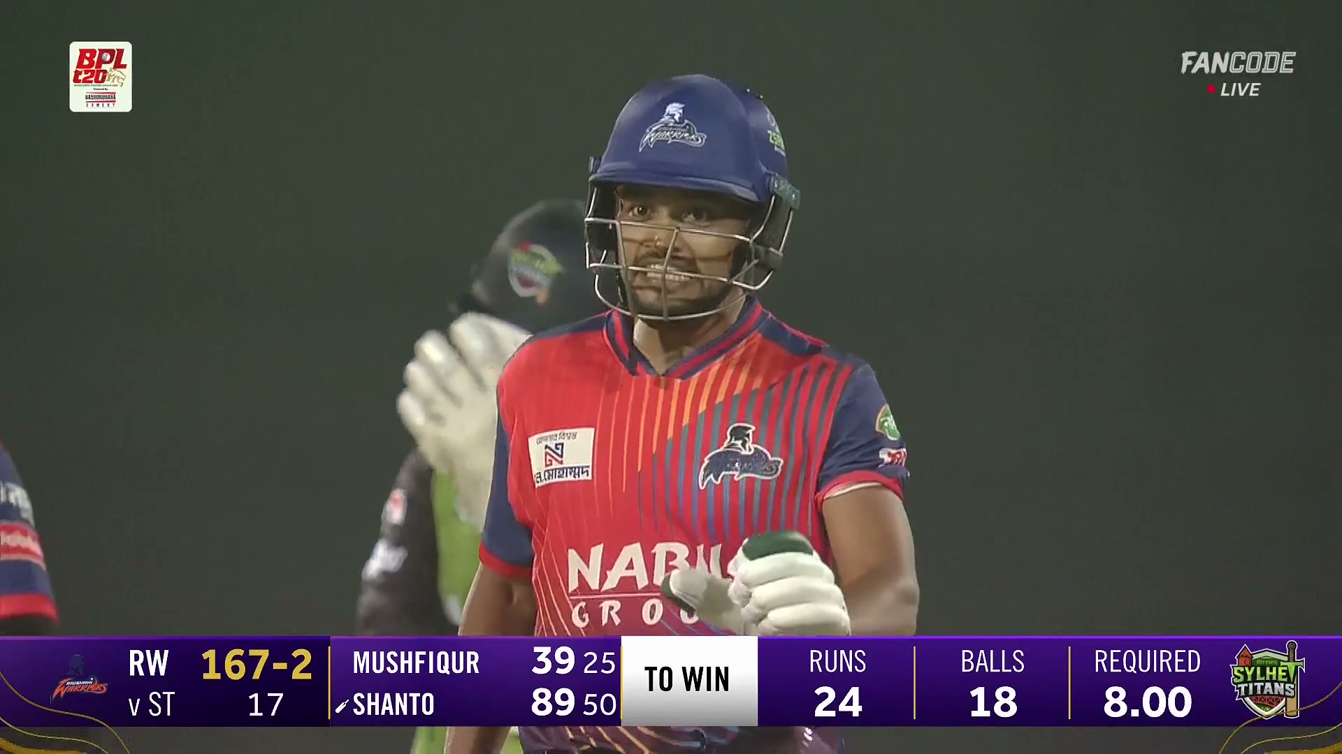 poster url for Six! Najmul Hossain Shanto Hammers The Missed Yorker Across To Square Leg