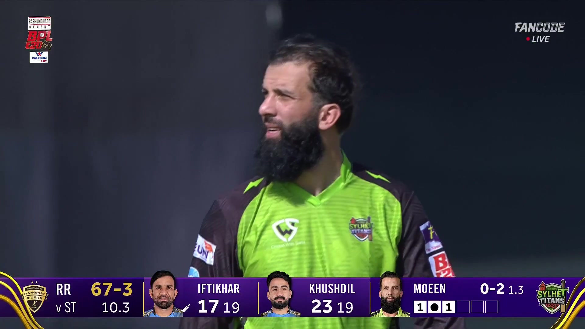 poster url for Wicket! Moeen Ali Strikes With Clever Carrom Ball, Iftikhar Ahmed Edges Loft Into Shohidul Islam's Hands