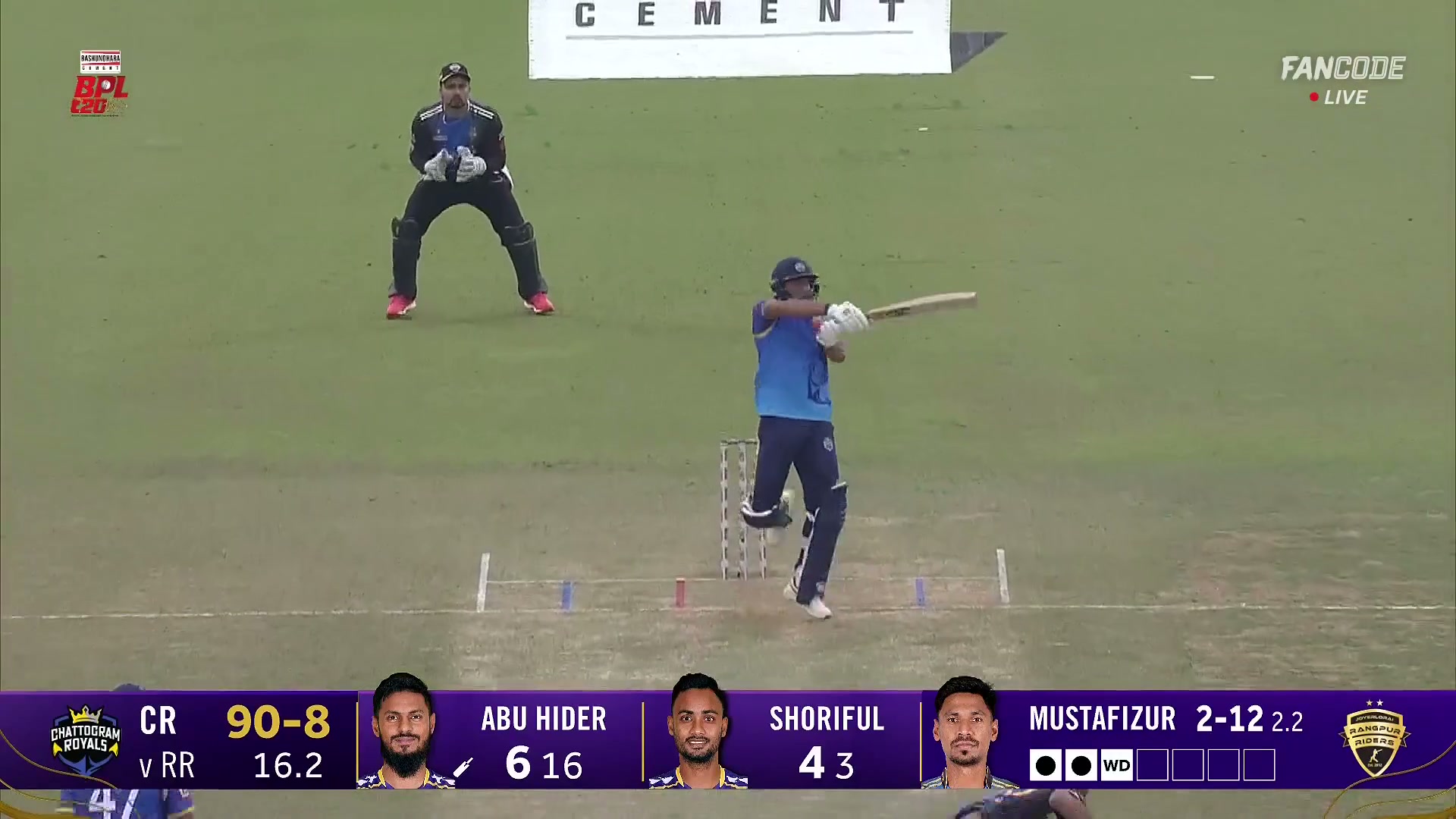 poster url for Six! Abu Hider Pulls Mustafizur Rahman Short Ball For Huge Square Leg Maximum