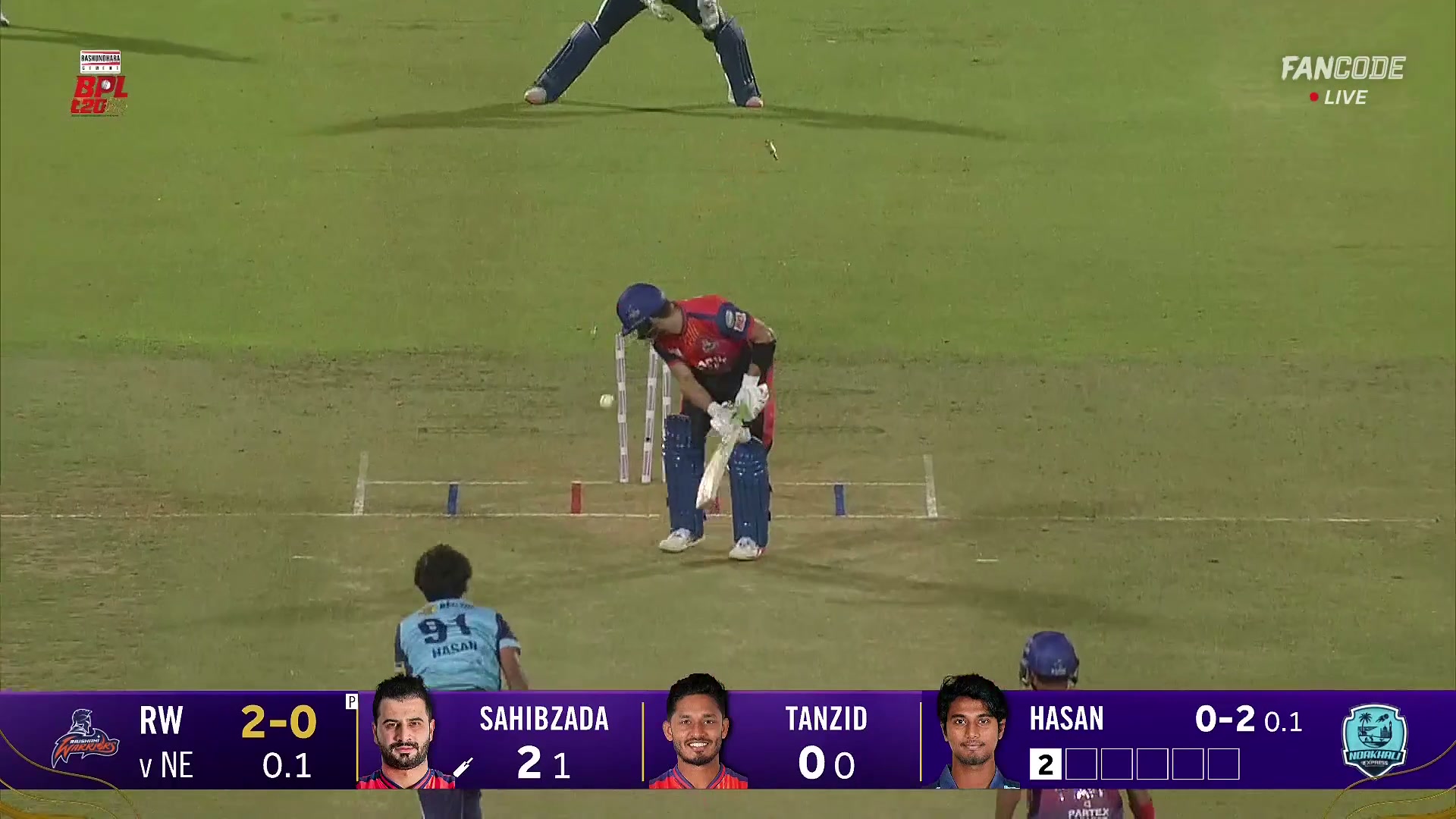 poster url for Wicket! Hasan Mahmud Cleans Up Sahibzada Farhan With Skiddy Early Breakthrough