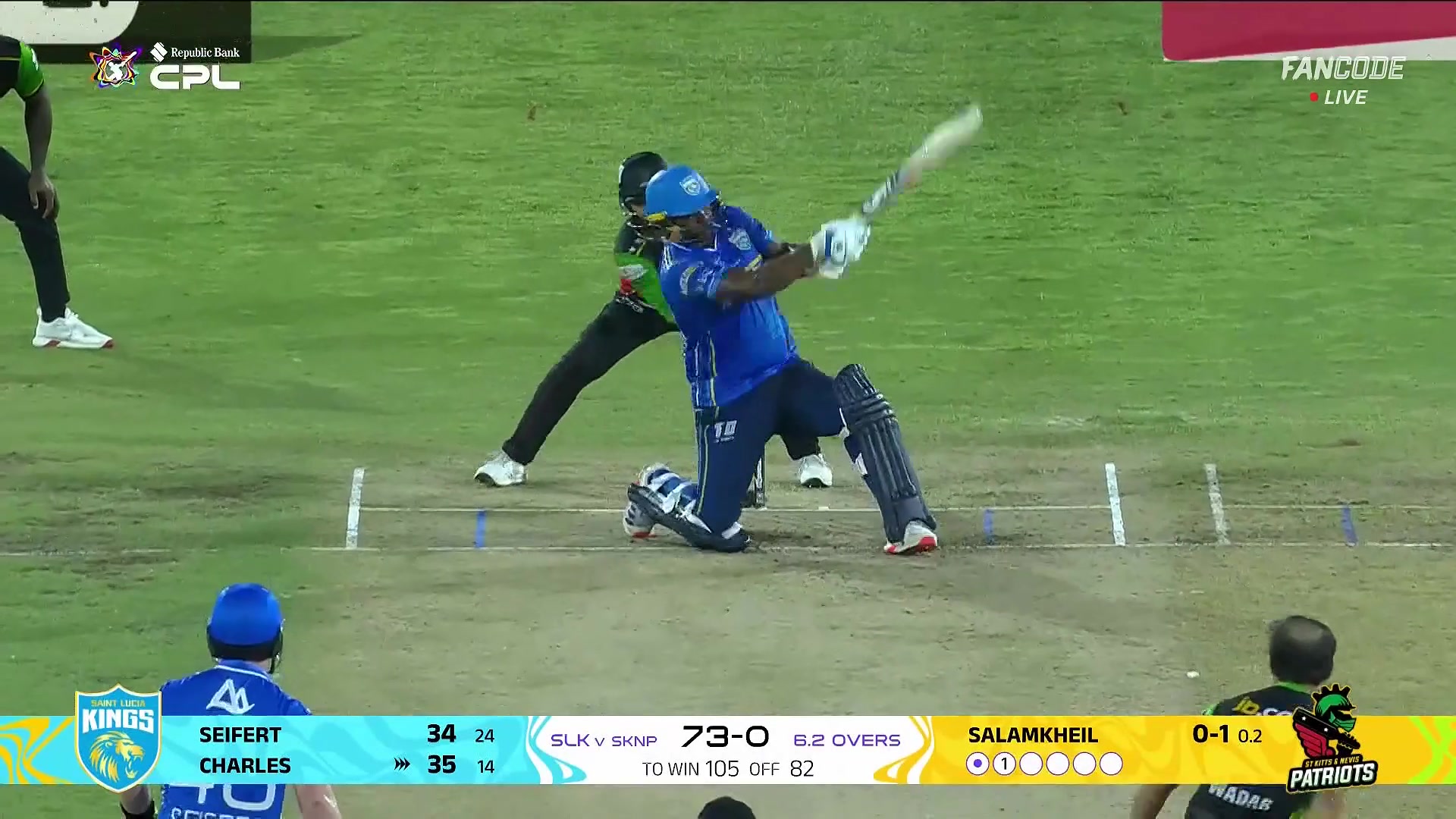 Six! Johnson Charles Sits Down On One Knee And Slogs It Over The Backward Square Leg For Maximum