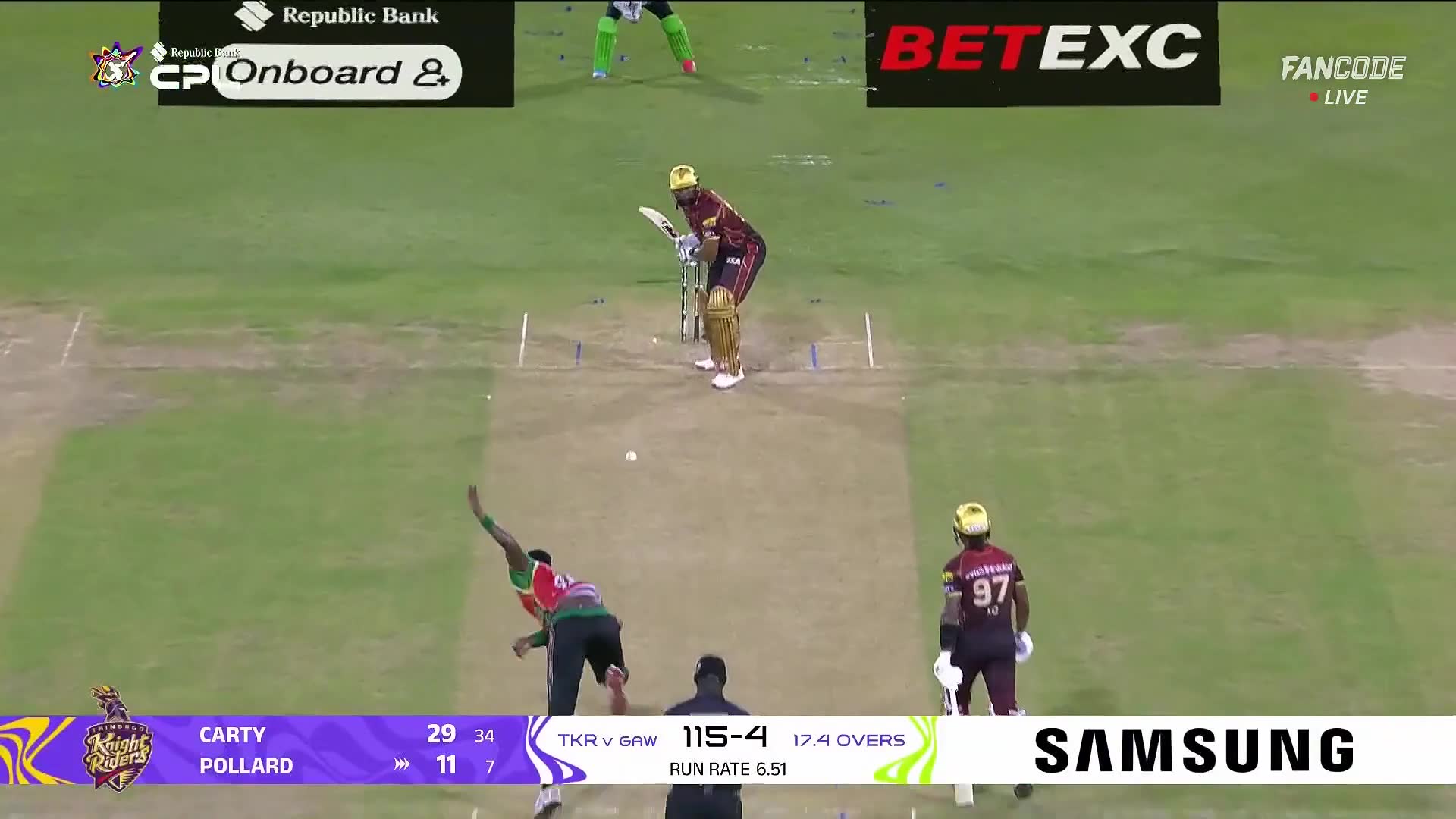 Six! Pollard Hits It Straight Over The Bowlers Head For A Maximum