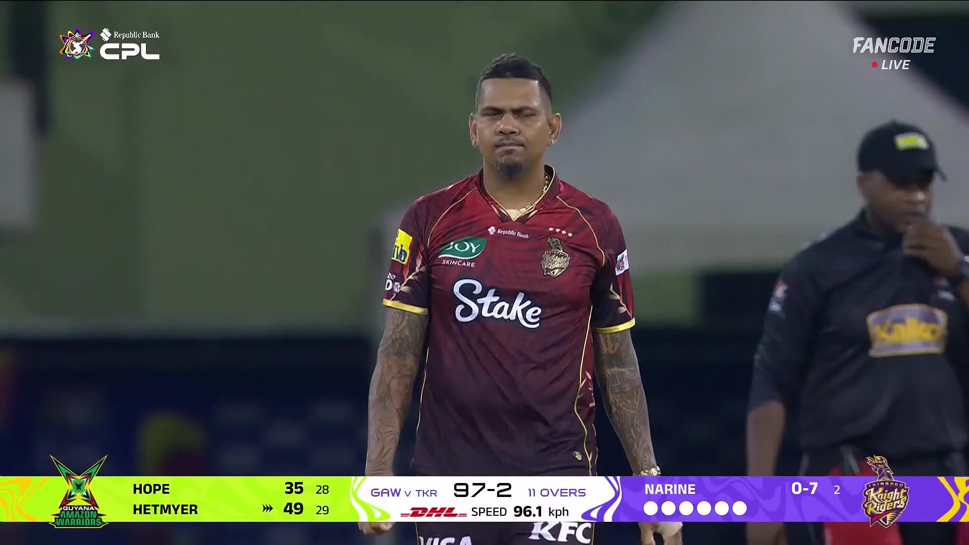 Wicket! Narine Breaks The Patnership, Hetmyer Has To Depart