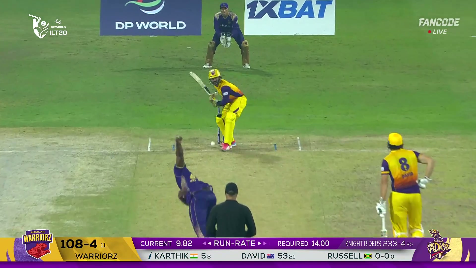 Wicket! Dinesh Karthik Is Castled By Andre Russell With A Perfect Full Delivery Splitting Bat And Pad