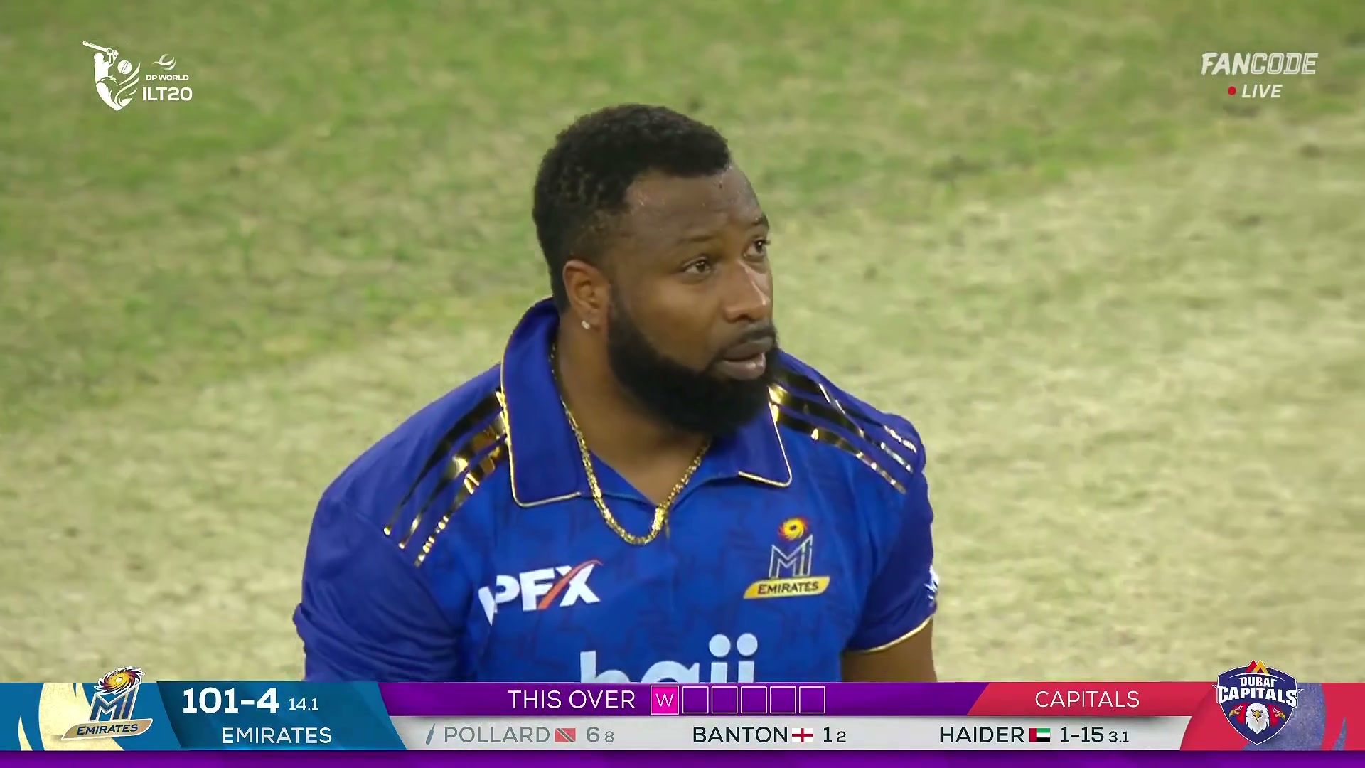 Wicket! Kieron Pollard Gets A Leading Edge And Is Caught At Short Third By Waqar Salamkheil