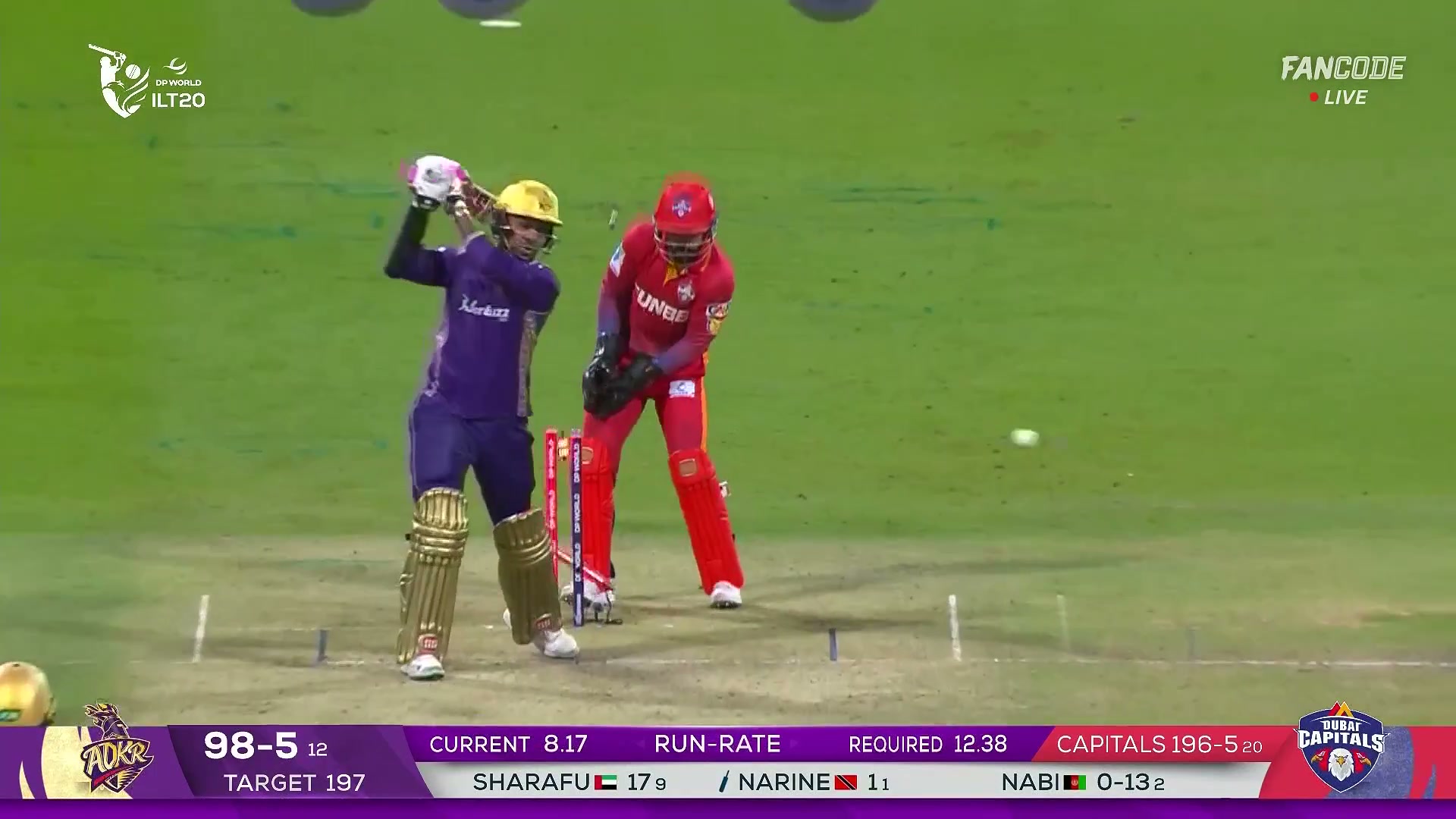 Wicket! Nabi Strikes Immediately As Narine Loses Off Stump