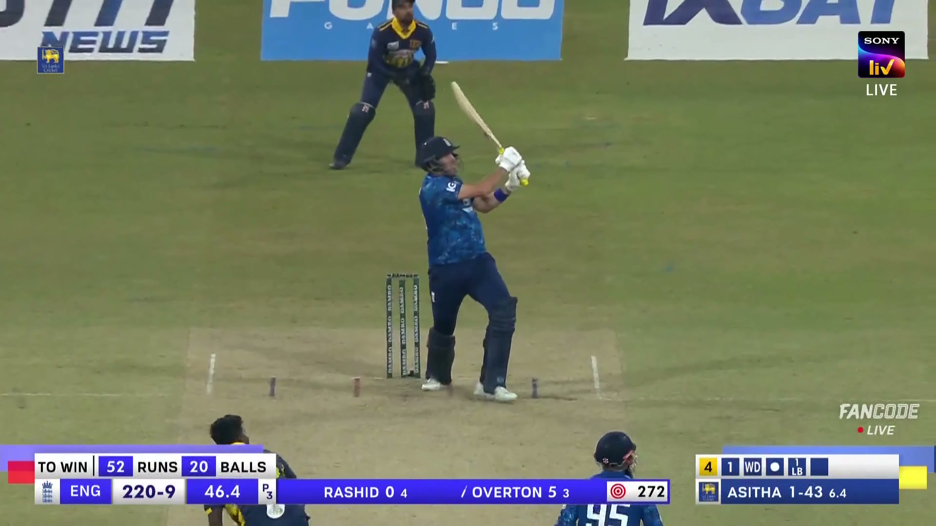 poster url for Six! Jamie Overton Clears The Front Leg And Nails It Over Deep Mid-Wicket