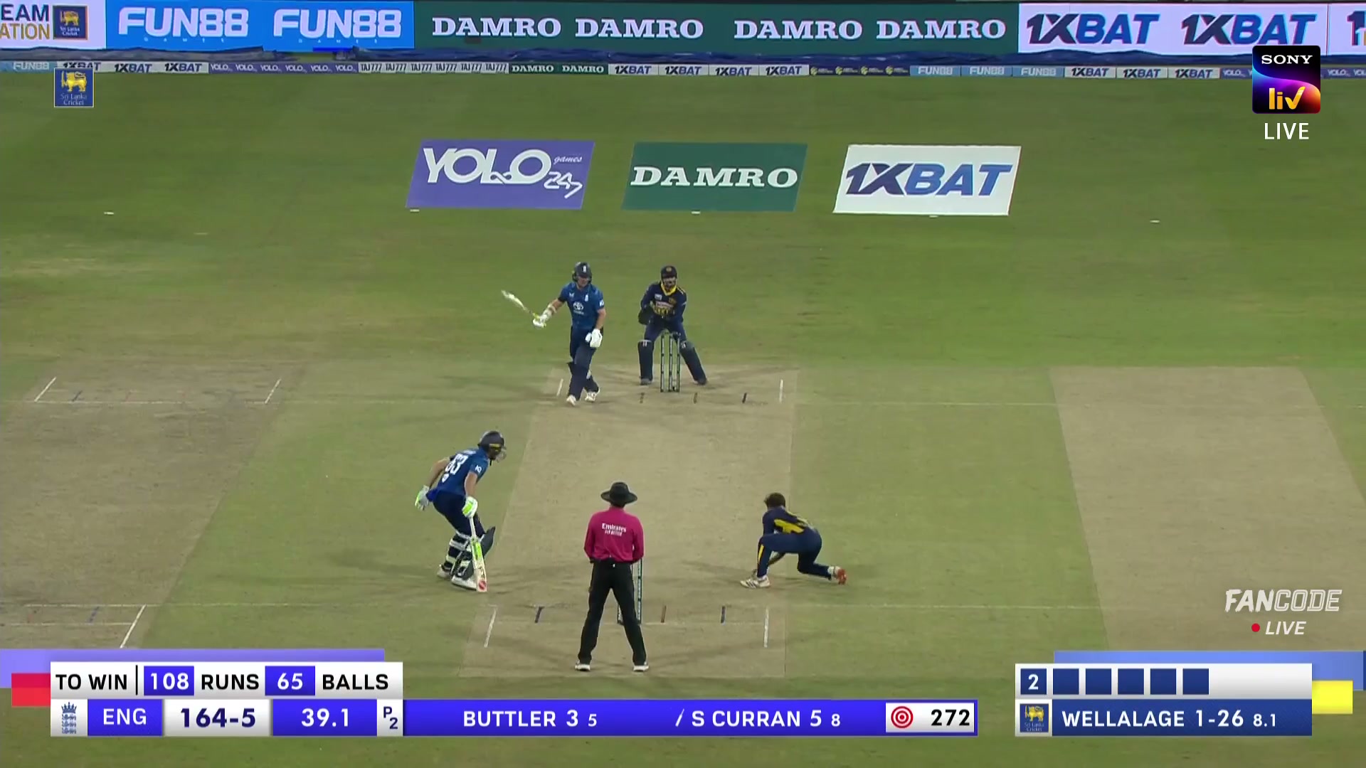 poster url for Wicket! Sam Curran Chips It Straight Back To Dunith Wellalage, England Lose Their Sixth Wicket