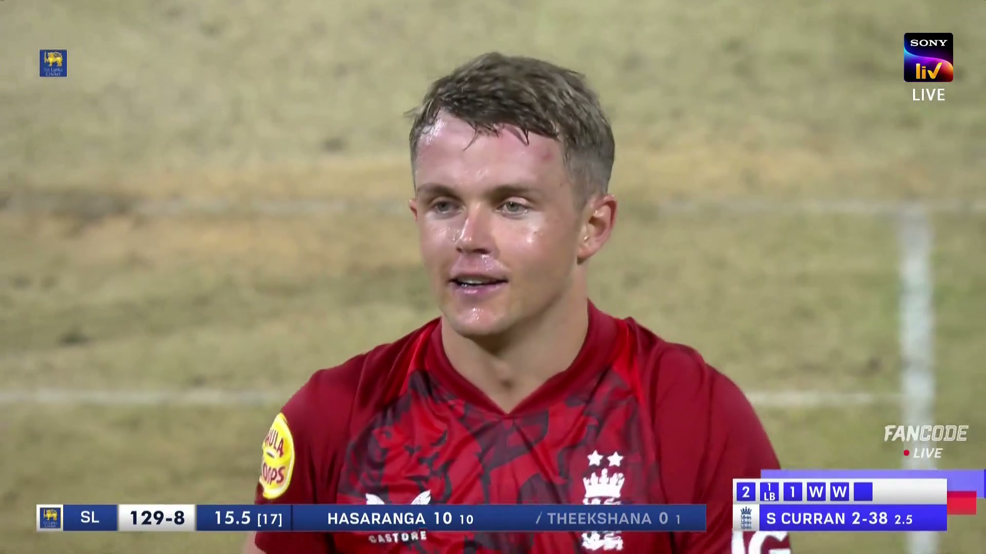 poster url for Wicket! Two In Two For Sam Curran As Maheesh Theekshana Chips It And Overton Takes A Simple Catch At Long-On