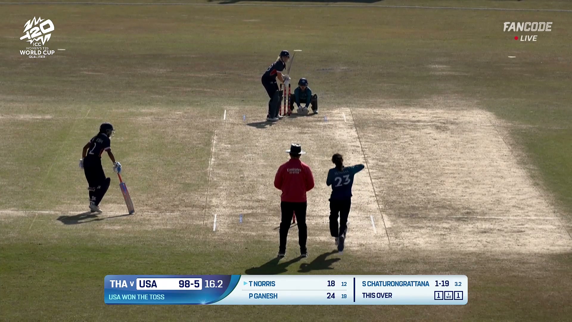 Wicket! Sunida Chaturongrattana Traps Tara Norris In Front, Sunida Chaturongrattana Strikes