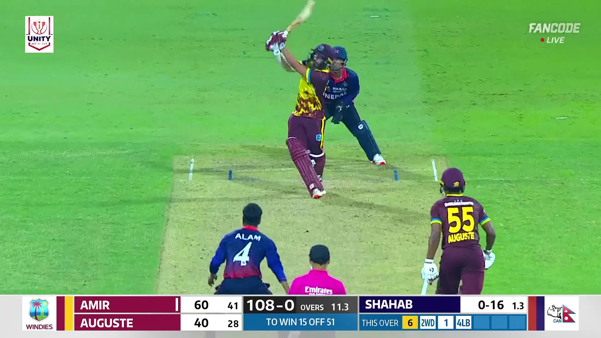 poster url for Six! Amir Jangoo Advances Down And Thumps A Lofted Strike Over Mid Wicket For Maximum
