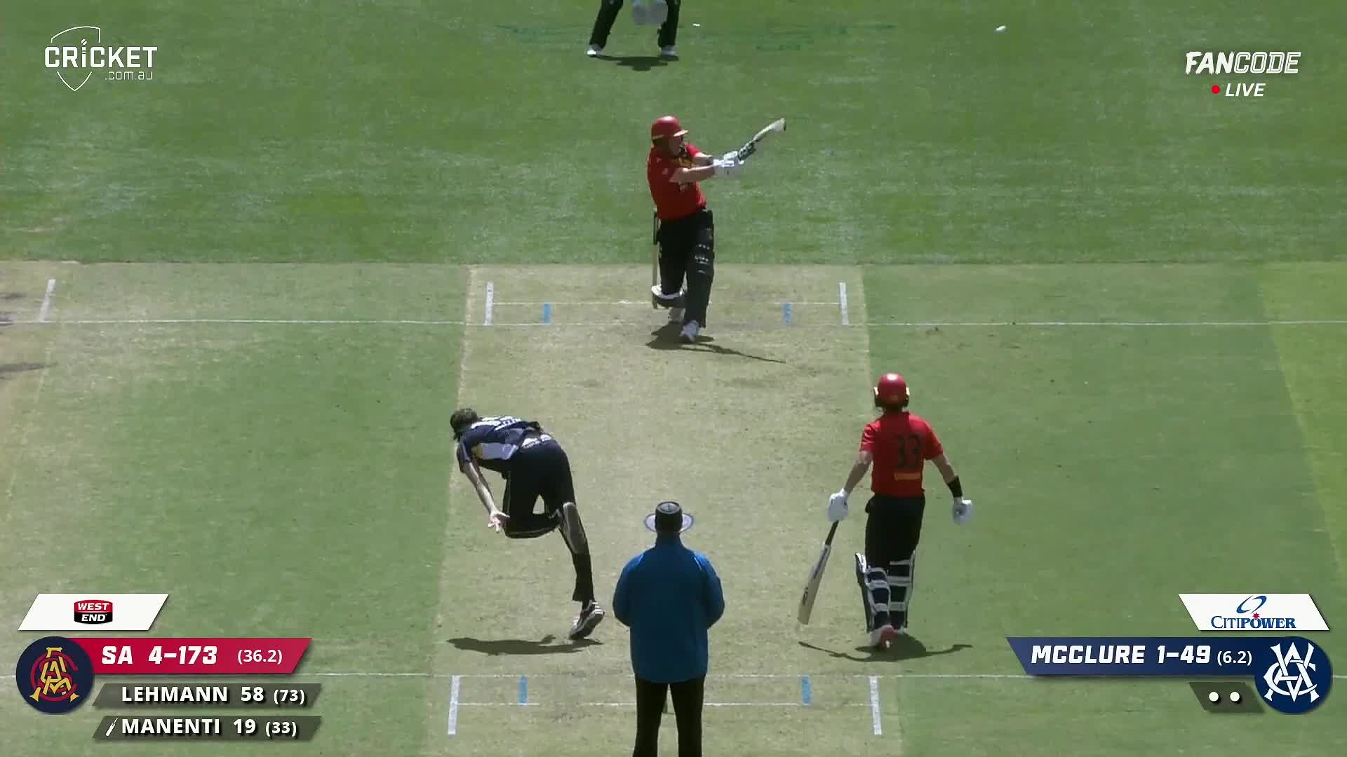poster url for Six! Harry Manenti Hammers Towards Backward Square Leg For A Maximum