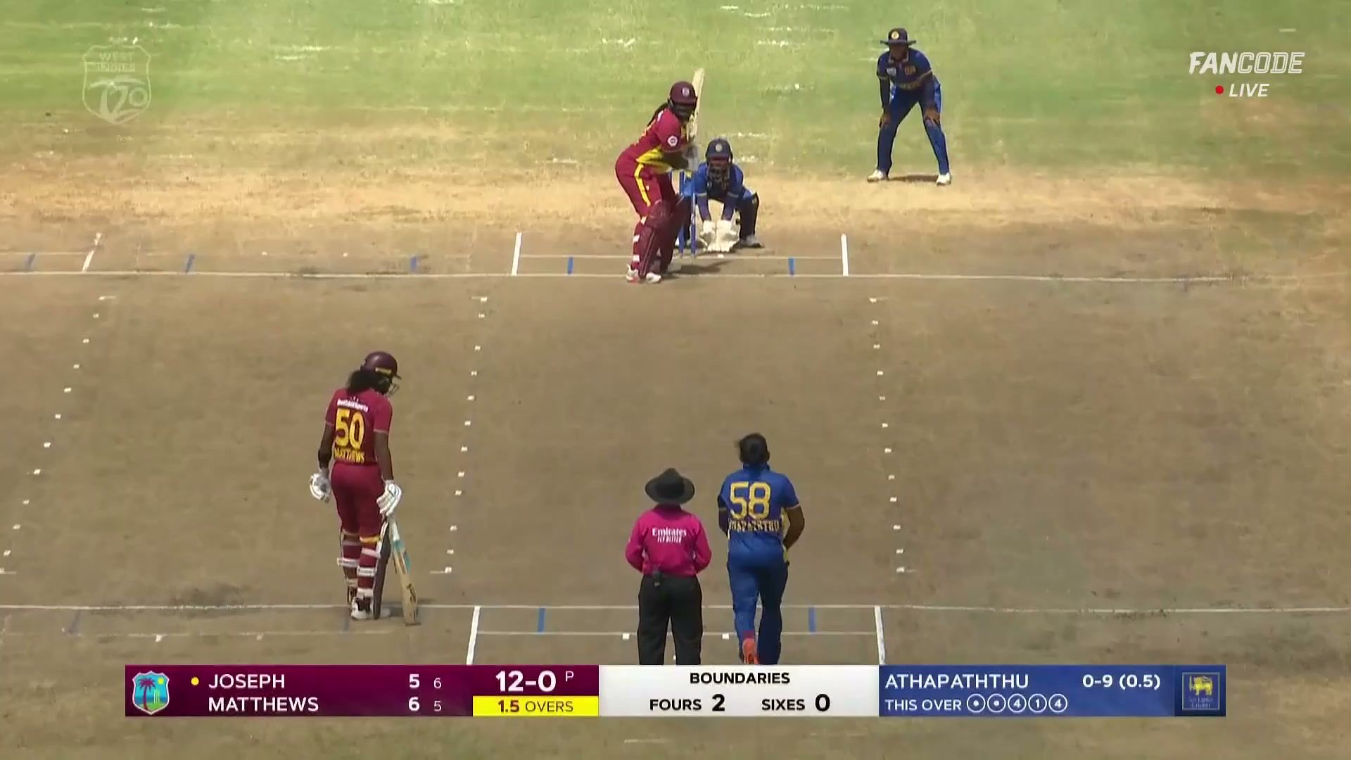 poster url for Wicket! Chamari Disturbs The Sticks Of Qiana To Draw First Blood