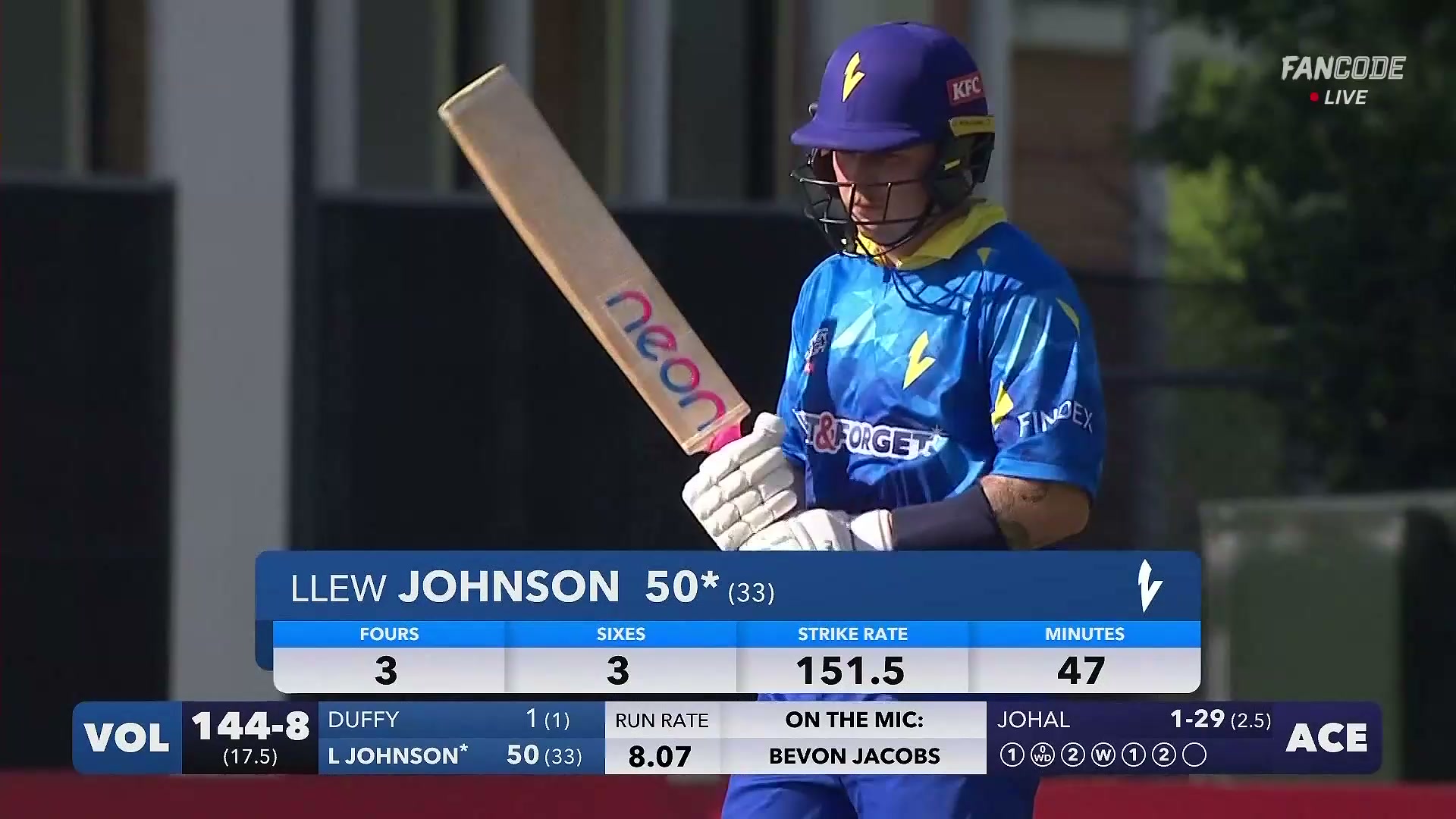Fifty! Llew Johnson Reaches Half-Century with Controlled Mid-Wicket Double