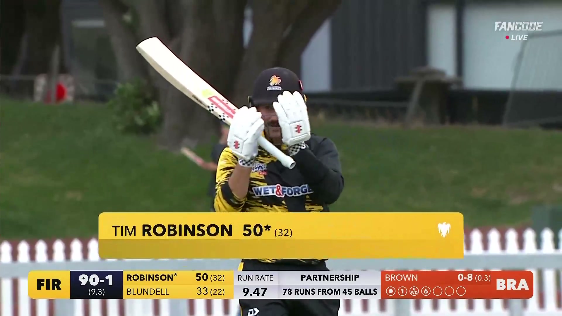 Fifty! Tim Robinson Celebrates Half-Century, Thundering Joshua Brown Down the Ground