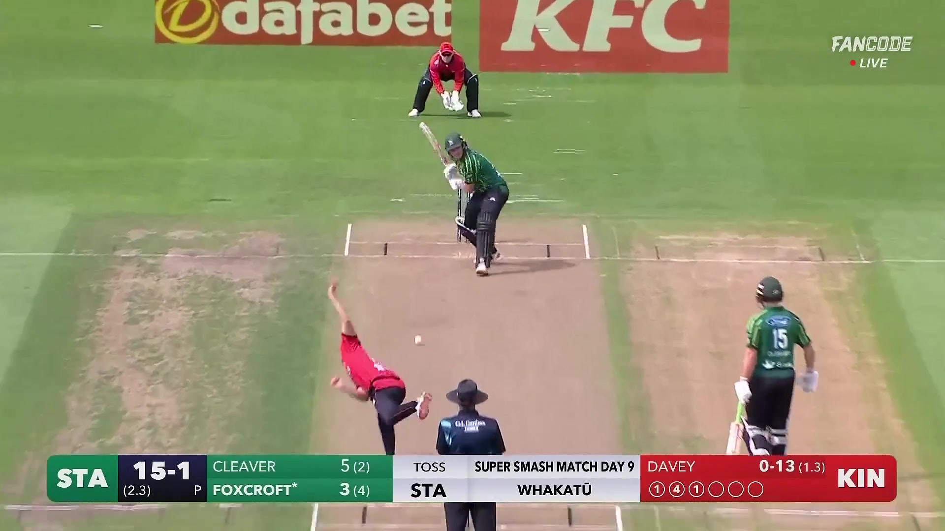 poster url for Six! Dean Foxcroft Skips Down The Track And Tonks It Over The Long On For A Maximum
