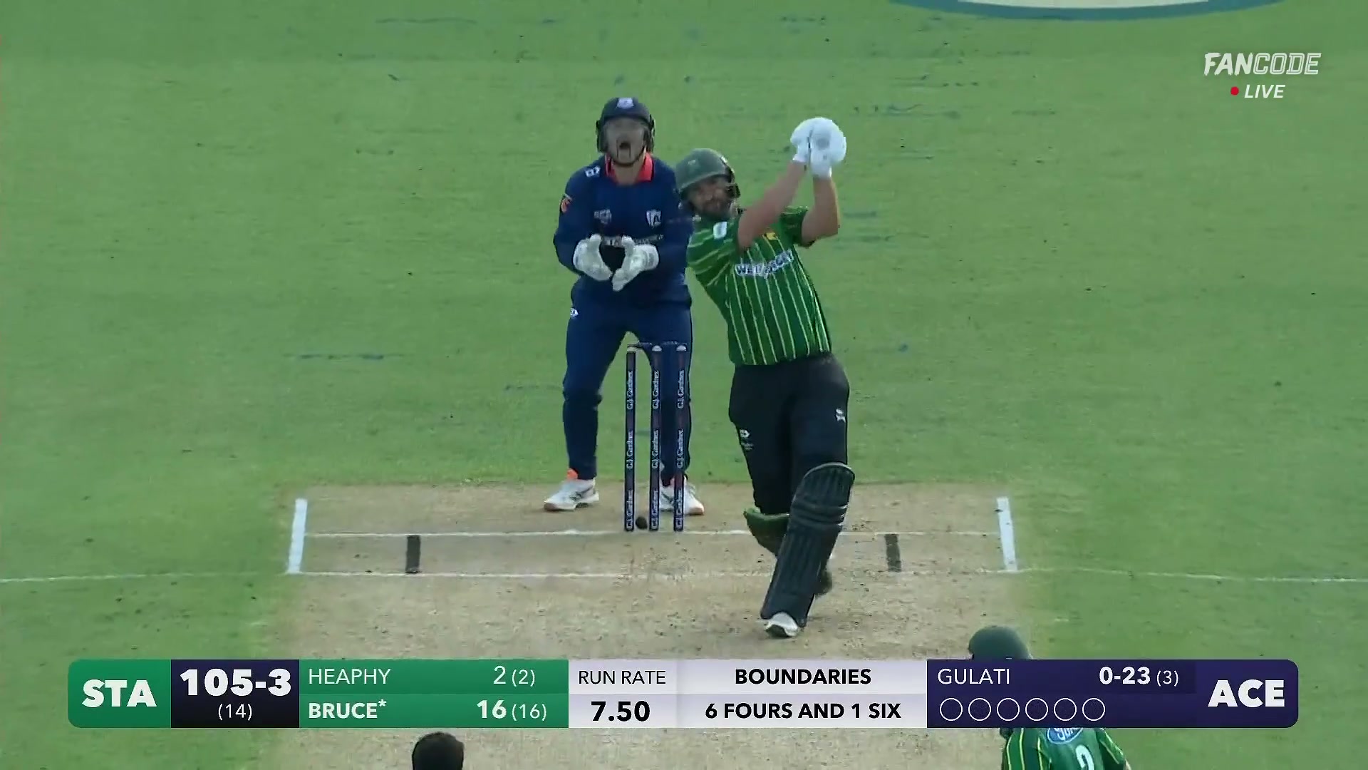 poster url for Six! Tom Bruce Launches It Long And Straight Over The Sight Screen