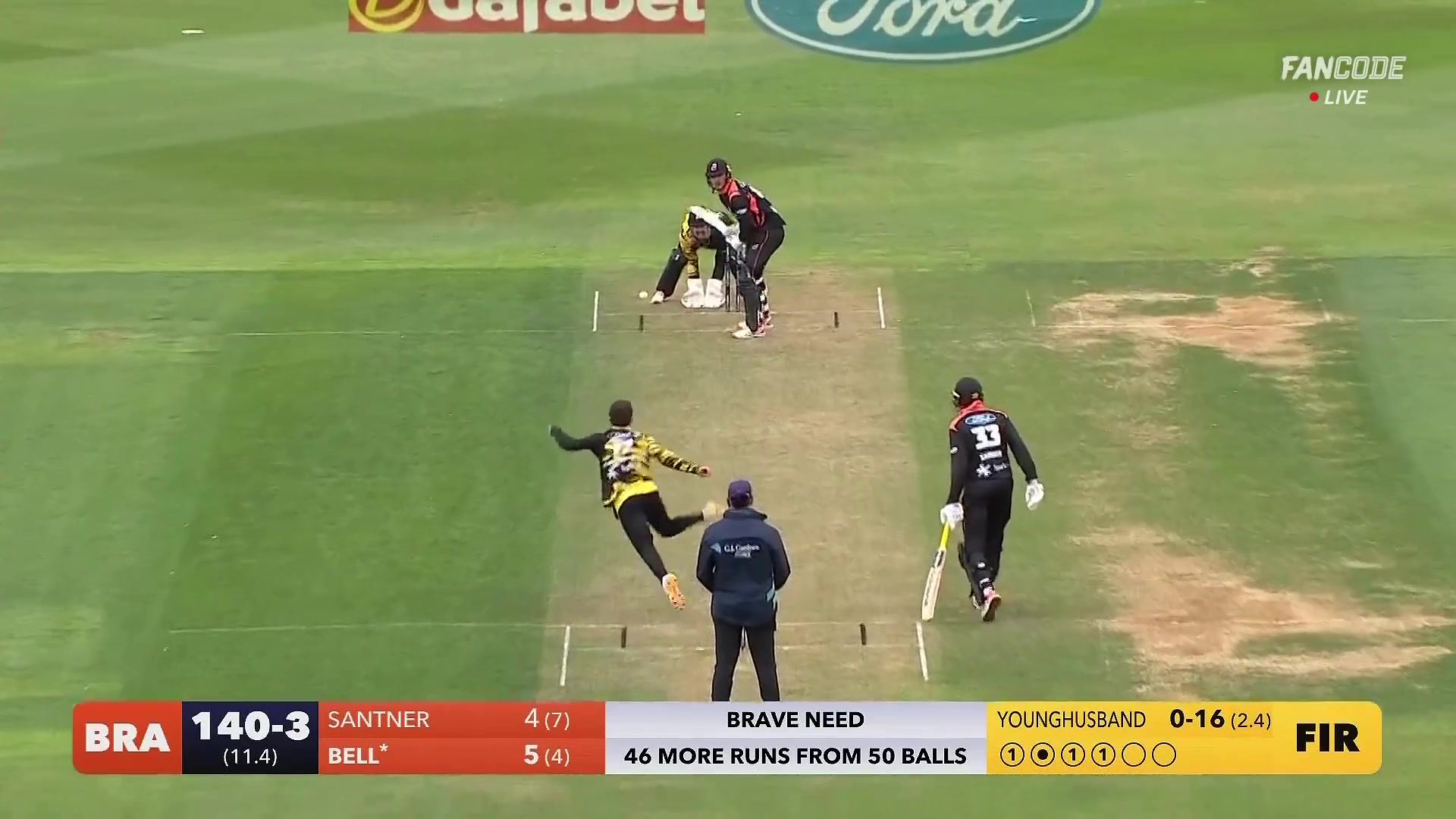 Six! Xavier Bell Lofts Peter Younghusband Gracefully Over Covers for A Maximum