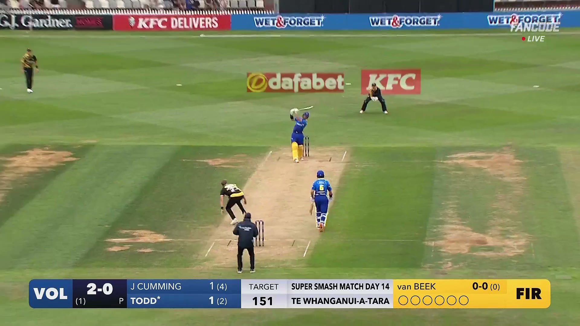 poster url for Four! Stand And Deliver Shot Sends Logan Van Beek For A Straight Boundary