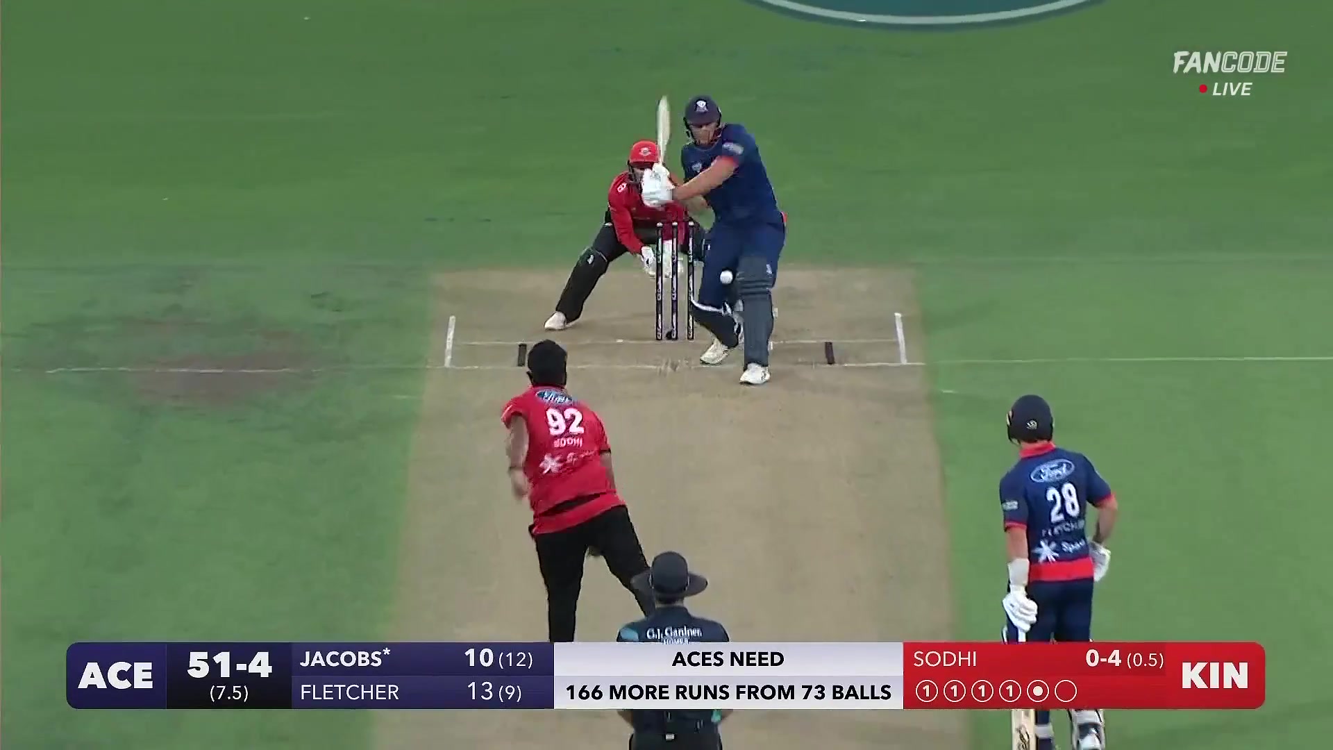 poster url for Six! Bevon Jacobs Launches Ish Sodhi Over Square Leg For A Maximum