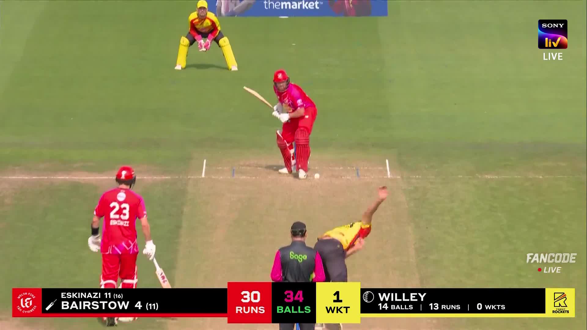 poster url for Four! Jonny Bairstow Just Tickles It Away Fine And The Ball Runs Aways Into The Fine Leg Fence