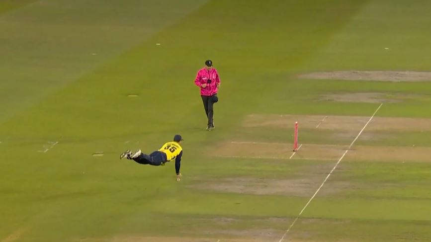 FLYING FINISH! Cartwright’s mid-air heroics floored Hughes