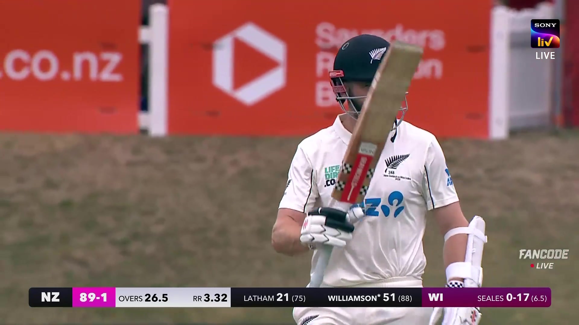 Fifty! Kane Williamson Reaches His Half Century As Seales’ Fuller Ball Is Driven To Covers