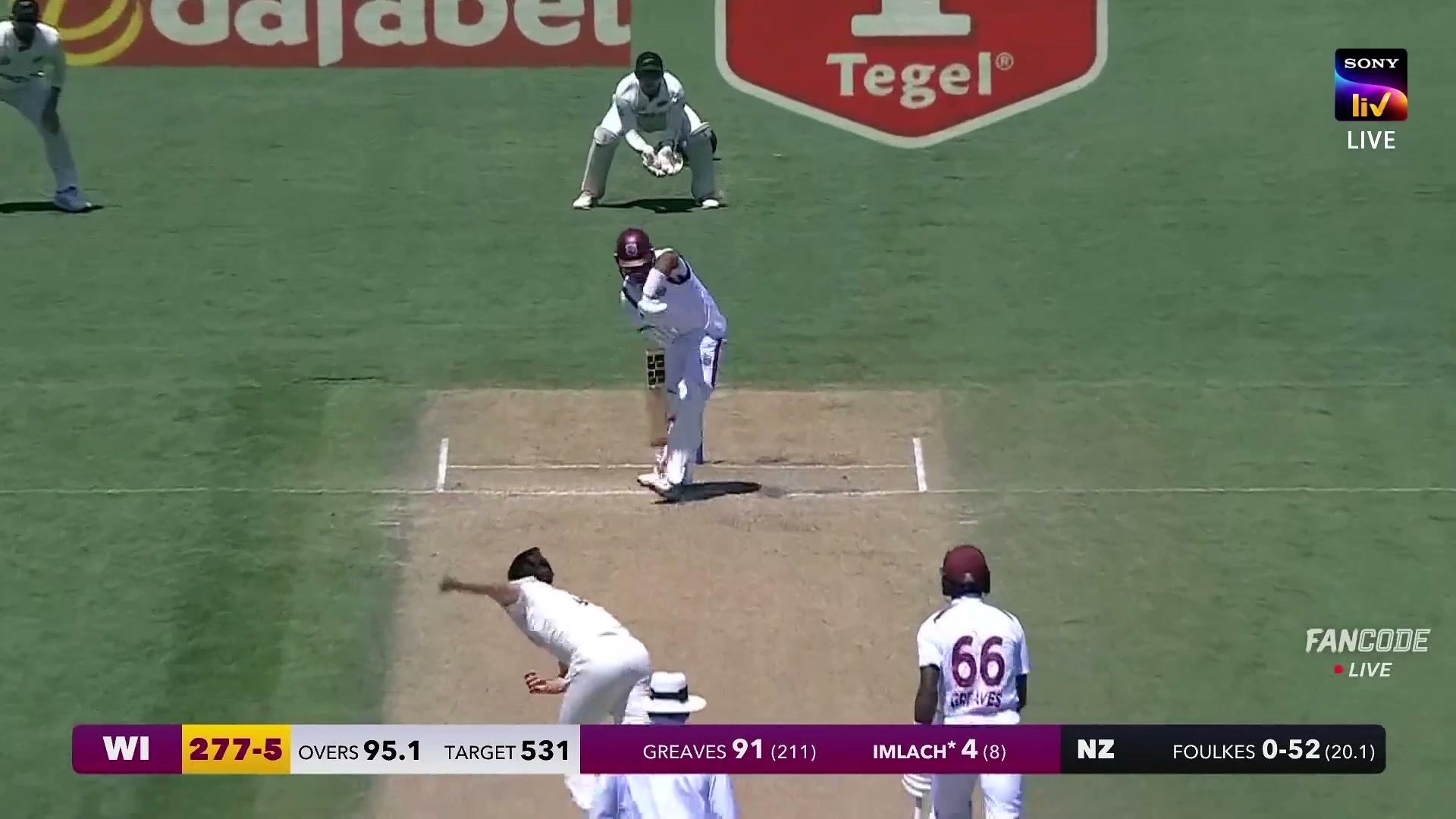 poster url for Wicket! Zakary Foulkes Traps Tevin Imlach In Front Of The Stumps