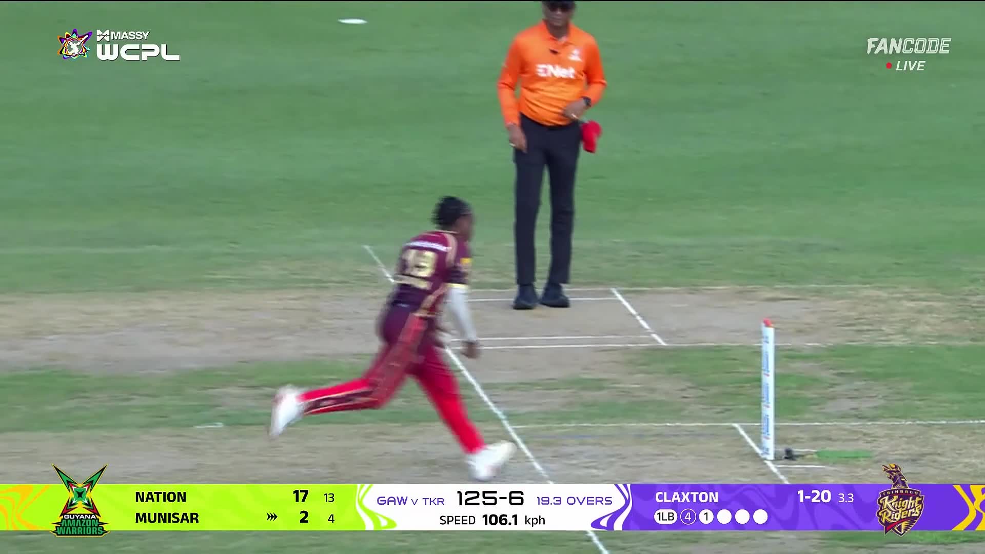 poster url for Wicket! Ashmini Munisar’s Innings Ends, Lee And Claxton Combine Brilliantly For Easy Run out