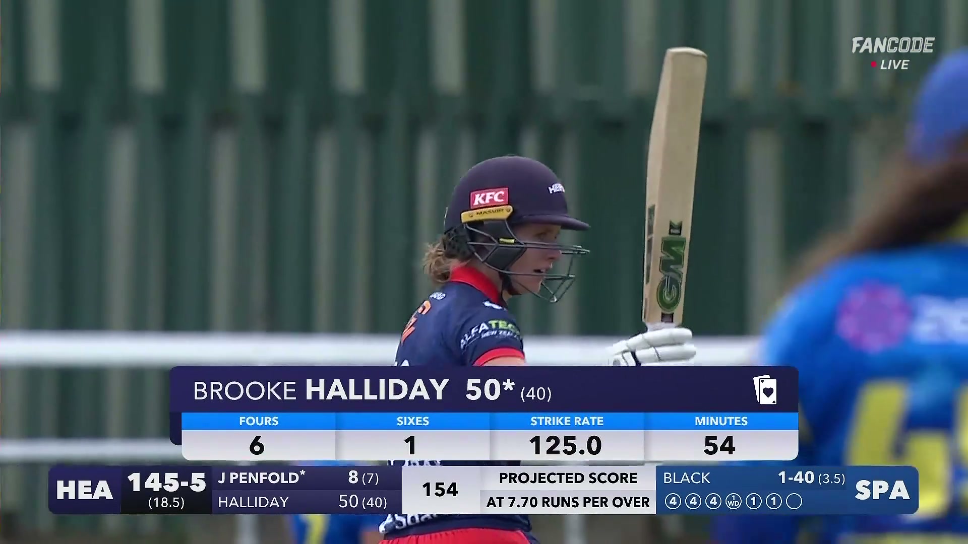 Fifty! Brooke Halliday Reaches Half-Century with Calm Square-Leg Single