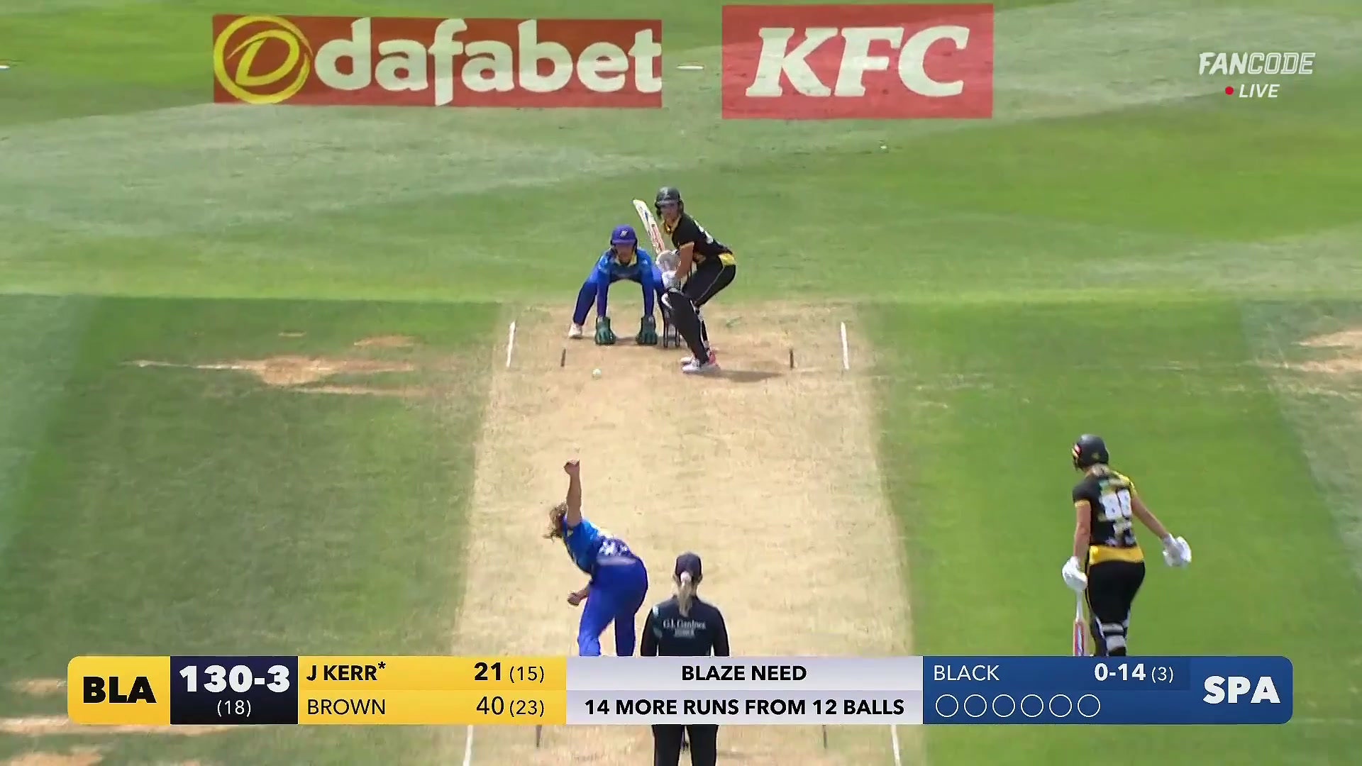 Four! One Knee Down As Jess Kerr Guides Emma Black To Mid Wicket Boundary